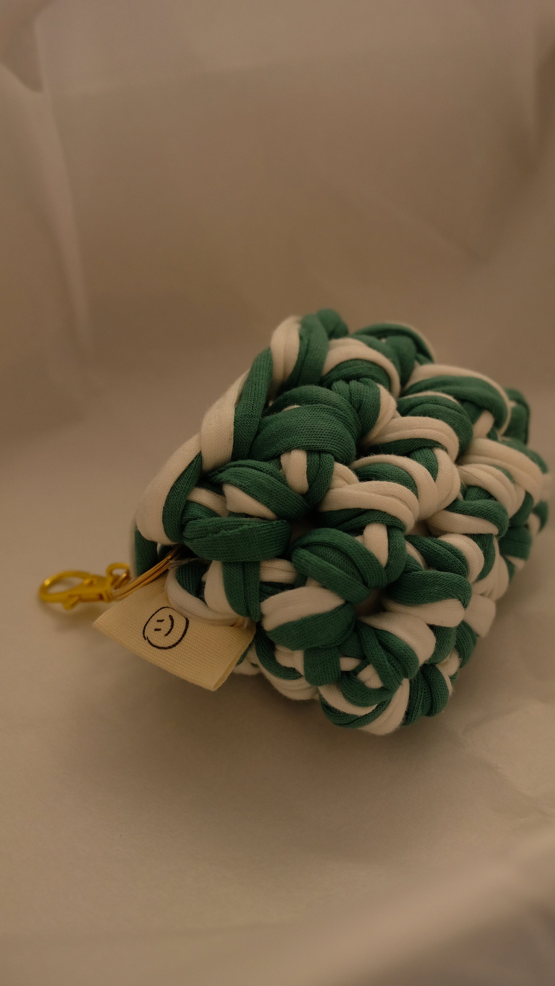 Dieses AirPods Case in Grün ist liebevoll handgehäkelt aus hochwertigem Zpagetti Cotton Yarn Madagascar Vanilla und Zpagetti Cotton Yarn Fern Glow – jedes Stück ein Unikat. Das morgenblau® Label an der Seite sorgt für einen hochwertigen Look, und mit dem Schlüsselring + kleinen Karabiner befestigst du deine AirPods sicher an Tasche oder Rucksack.